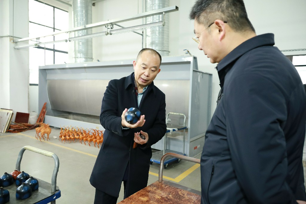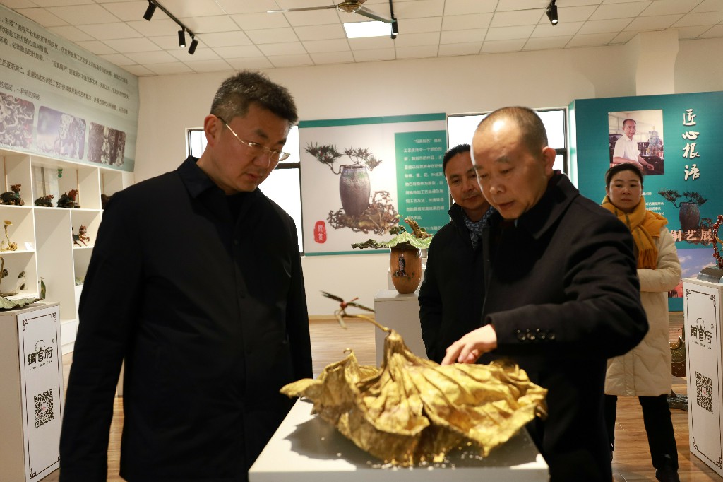 12月28日下午,銅官區(qū)區(qū)委書記王書春到銅官府銅藝文化產(chǎn)業(yè)園調(diào)研指導(dǎo),區(qū)委常委、常務(wù)副區(qū)長汪志祥陪同。銅官府趙敏及金星銅、大明銅匠負(fù)責(zé)人匯報了企業(yè)經(jīng)營發(fā)展情況。